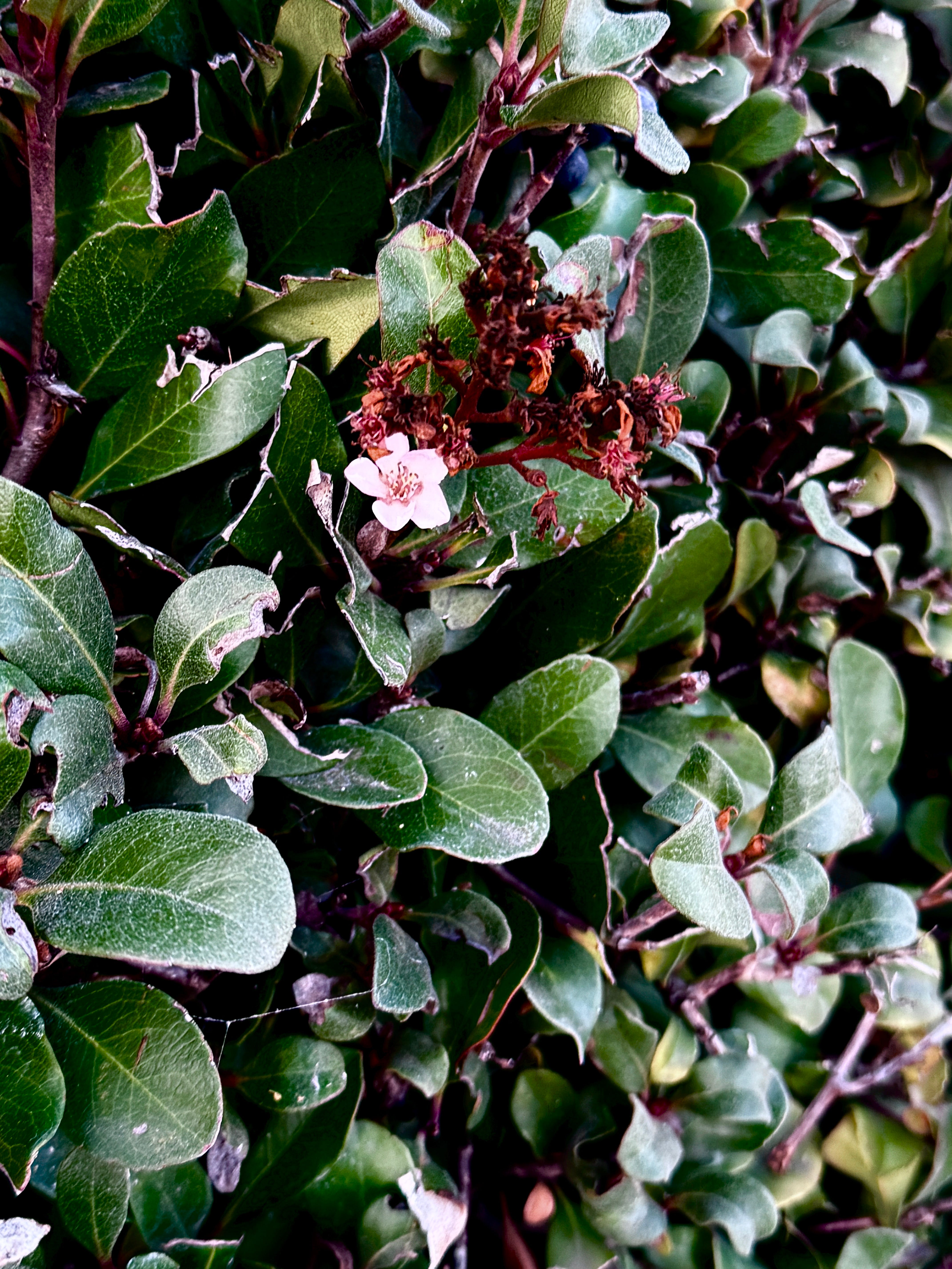 Why do we see this and allow our brains to automatically default to a negative thought when it could (and often is) something beautiful? Why, when right before I wrapped up my walk I passed by a dark forest green bush and was halted by the vision of a remarkably beautiful tiny pink flower, blooming with so much pride, alone.
