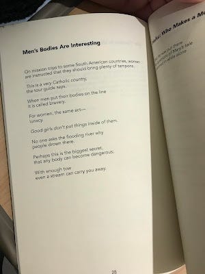 I don’t know if it was reading such depth about women’s bodies finally portrayed so truthfully and with the right kind of sardonic tone (when appropriate) by a man or if it was the overall perfection of the poetry, but I was addicted. Maybe I felt like I met an ally at last who was not afraid to put our truths on paper.