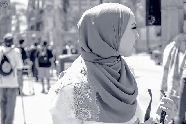 "Actually, it's a cultural question, if you don't mind." I smiled, because I never mind, which is ironically another reason some women have given for removing the headscarf. They hated being approached for questions about it or about the faith, which breaks my heart. I consider that an honor, to be a representative of Islam. I mean Muslims walk around whining about people’s ignorance towards our faith and cultures and then get agitated when someone comes seeking a means to end that ignorance with questions? Our Lord stated that our attire is meant to identify us and be a beacon of protection.